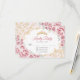Cartão de resposta RSVP de Quinceanera floral em ouro rosa. Recursos, fonte de caligrafia, borboletas douradas, rosas cor de rosa aguada e tiara. Perfeito para uma celebração glamorosa de princesa elegante. Personalize com seus próprios detalhes.