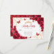 Cartão de resposta RSVP de Quinceanera floral vermelho dourado. Características, fonte de caligrafia, borboletas douradas, rosas em aquarela e tiara. Perfeito para uma celebração glamorosa de princesa elegante. Personalize com seus próprios detalhes.