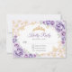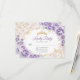 Cartão de resposta RSVP de Quinceanera roxo lilás floral. Recursos, fonte de script, borboletas douradas, rosas em aquarela e tiara. Perfeito para uma celebração glamorosa de princesa elegante. Personalize com seus próprios detalhes.