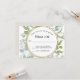 Cartão de resposta de RSVP correspondente com envelopes brancos gratuitos. Pintura em aquarela pintada à mão, folhagem de eucalipto verdejante frouxamente reunida forma uma coroa em torno de uma moldura fina e simples com acento dourado e suas opções de RSVP. Direitos autorais da obra de arte, Audrey Jeanne Roberts.
