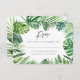 Cartão de resposta RSVP com folhagem de folha de palmeira tropical em aquarela. texto em letra cursiva. Parte de uma coleção de verão na moda. A cor do fundo pode ser alterada.