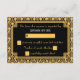 Um cartão de resposta de RSVP de casamento clássico e vintage com tema "O Grande Gatsby" dos anos 1920 em tons de preto e dourado. Um fundo preto destaca o padrão de diamante do período Art Deco em tons amarelo-dourados. Adesivos e etiquetas de endereço de devolução coordenados podem ser encontrados na loja Truly_Uniquely.
