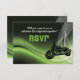Cartão de resposta RSVP de casamento de motociclista na estrada verde, apresentando uma motocicleta em um fundo gradiente verde, branco e preto abstrato e uma malha branca. Design elegante e legal perfeito para os motociclistas com um gosto refinado. Alguns elementos cortesia de Clipartandfonts.com.