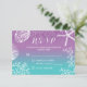 Cartão de Resposta de RSVP de Casamento na Praia com Estrela do Mar e Recifes em Lavanda Azul Ombre.