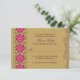 Elegante, ornamentado e intrincado padrão de tatuagem de henna estilo étnico indiano cartão de resposta RSVP de casamento. As cores no convite são uva passa (berinjela, figo, ameixa), rosa vibrante e dourado. Cores fortes que são perfeitas para um casamento indiano. Você pode personalizar todo o texto neste cartão de resposta de RSVP de casamento. Para alterar o texto, use as opções de personalização. Ou para alterar a fonte, o tamanho da fonte, a cor da fonte ou a colocação do texto, escolha personalizá-lo.