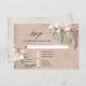 Cartão de resposta de RSVP Orquídea Branca com Flora Tropical Verde para combinar com nosso convite de casamento completo. O fundo de papel cor-de-rosa desbotado rústico e texturizado é combinado com imagens de aquarela pintadas à mão em um estilo Boho floral com folhagem de selva em tons terrosos e suaves e folhas de palmeira para um casamento com tema de praia, tropical ou à beira-mar. Copyright, Audrey Jeanne Roberts.