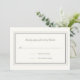 Um quadro duplo em camadas digitalmente com um falso efeito emboscado enfeita esta elegante e sofisticada peça de companheira de convite formal: o cartão de resposta, que apresenta caligrafia elegante com floreados delicados e um fundo branco pérola. Esta simples, clássica, carta de resposta de casamento tradicional é uma escolha encantadora para casais que adoram arte, designs de arte, arte única e original e designs de casamento tradicionais e formais. Personalize cada linha de texto. Itens correspondentes disponíveis.