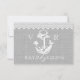 Cinza náutico e cartão de resposta em estilo rústico branco com âncora e ziguezague ou desenho em chevron para complementar o convite. Desenho de âncora com corda e a aparência de aniagem cinza neste convite de casamento de praia único.