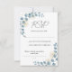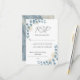 Coletar as respostas dos convidados com estilo com este cartão de RSVP elegante "Floral Azul Desbotado e Dourado". O design apresenta rosas azuis românticas em aquarela combinadas com elementos geométricos modernos em dourado falso, combinando perfeitamente com o conjunto de convites.