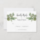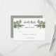 Com delicada folhagem de eucalipto em aquarela, este elegante cartão de resposta botânico pode ser personalizado com as suas informações de resposta especiais, com um fundo colorido correspondente no verso ou adicionar informações adicionais, como a escolha do menu. Perfeito para casamentos, chá de noiva, chá de bebê, batizados, festas de noivado, celebrações de aniversário, formaturas, aniversários e outros eventos especiais ao longo do ano! Concebido por Thisisnotme©