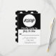 Cartão de confirmação de presença e reserva de casamento preto e branco totalmente personalizável com um design de padrão de bolinhas personalizável no verso. A cor deste cartão de confirmação de presença é totalmente personalizável para combinar com o tema de cores do seu casamento. Para alterar a cor preta, basta clicar no botão "Personalizar!" e escolher qualquer cor que você goste na paleta "Cor do Fundo Impresso". Papelaria e acessórios de casamento personalizáveis combinando estão disponíveis na loja de papelaria de casamento Forever In Love.