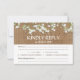Cartões de resposta de menu de casamento country com luzes cintilantes apresentando um efeito de juta marrom rústico ao fundo, luzes de corda elegantes em jarros de mason, flores de baby breath e um modelo personalizado.