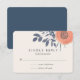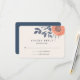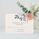 Projetado para combinar com nossa coleção de convites para o casamento de Peach Poppies, nosso cartão de resposta floral chic e romântico apresenta um spray de flores de papoila em pêssego de coral cercado por folhas e botões em cinzas azuis sujas e poeirentas e verdes caçadores desbotados.