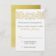 O texto e a cor de fundo frontal nesta cor dourada e na placa de inserção de RSVP de casamento floral branca em floco de neve é totalmente personalizável. Para alterar o texto, use as opções personalizar. Para obter alterações mais abrangentes no cartão de resposta, incluindo alterações na cor do plano de fundo, na fonte, na cor da fonte ou no posicionamento do texto, use a opção personalizar. Essa placa de resposta RSVP branca e ouro simulado é perfeita para um casamento no inverno. Apesar de ser personalizado para um casamento, poderia ser usado facilmente para uma variedade de outras ocasiões especiais... que você decide. Tudo o que você precisa fazer é mudar o texto. Nota: O ouro é uma cor que é simulada pela tinta. Não é uma tinta de ouro metálica. A cor do plano de fundo está sendo mostrada como champanhe devido ao tipo de papel selecionado. Se você selecionar outros tipos de papel, ele será alterado para fundo branco ou marfim.