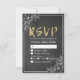 Modelos de Placa de Resposta de RSVP de Casamento Moderno - Script Dourado Elegante e Quadro Floral Branco no Quadro Preto Grunge. Um Design perfeito para o seu grande dia. Todo estilo de texto, cores, tamanhos podem ser modificados para ajustado das suas necessidades!