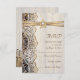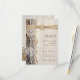 Lace branco elegante, fita e flor em madeira para casamento RSVP resposta/cartão de resposta com rendas brancas em madeira marrom com duas fitas de cetim cruzadas e flor em bege com brilho metálico e uma joia branca. Texto em castanho. Note-se que rendas, madeira, flores e joias são todas "impressas" e não tecidos reais, madeira, joias ou cristais. Este elegante, sofisticado e romântico design com uma essência rústica faz parte de um casamento e é perfeito para um casamento rústico do país ou para um primavera ocidental, verão ou outono/outono com uma paleta de cores neutras.