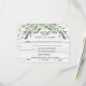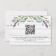 Madeira branca russa como fundo, texto preto. Decorado com flores de lavanda e verde de eucalipto. Personalize e adicione uma resposta por data. Adicione as seleções/opções do menu. Voltar: adicione o URL do seu site de casamento ao código QR para obter mais detalhes e/ou RSVP