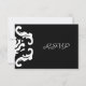 Este RSVP de casamento ousado em preto e branco clássico apresenta uma interpretação moderna do padrão damask vintage. Tanto a frente quanto o verso deste convite elegante apresentam o mesmo enfeite damask em preto e branco. Totalmente personalizável, este convite pode ser facilmente reaproveitado para qualquer ocasião. Se precisar de ajuda para personalizar qualquer um dos nossos produtos, use os links "contato" ou "enviar mensagem" fornecidos.