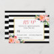 Placa de Resposta RSVP Floral de Stripes Brancas Negras Clássicas. (1) Para mais personalização, clique no link "personalizar mais" e use nossa ferramenta design para modificar esse modelo. (2) Se você prefere papéis mais espessos / Término da matéria, talvez considere escolher o Tipo de papel correspondente. (3) Se precisar de ajuda ou itens correspondentes, entre em contato comigo.