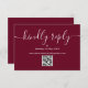 Um script de assinatura simples e elegante responde gentilmente à placa RSVP burgundy com código QR. Projetado por Thisnotme©