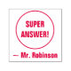 Este design de carimbo encorajador apresenta a mensagem "SUPER ANSWER!" e um nome de educador personalizado. Ele poderia ser usado por um professor de escola, educador, instrutor ou tutor ao marcar tarefas, para reconhecer que o aluno fez um trabalho de excelente.