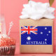 Vinheta retangular com uma imagem da bandeira da Austrália. A bandeira é um símbolo azul desfigurado: um campo azul com o bandeira da União no cantão (quarto superior do assento) e uma estrela branca de sete pontas conhecida como Estrela da Commonwealth no quarto inferior do assento. A mosca contém uma representação da constelação da Cruz do Sul, composta de cinco estrelas brancas - uma pequena estrela de cinco pontas e quatro, maiores, de sete pontas. Consulte cartão postal correspondente. Veja toda a coleção de adesivos australianos na seção CARDS, POSTCARDS & STICKERS.