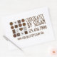 Os adesivos apresentam uma ilustração marcadora original dos doces de carbono de chocolate. Simplesmente personalize com suas informações comerciais para que um adesivo exclusivo seja adicionado aos seus produtos deliciosos!