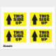 Este adesivo de flecha para cima para movimentação e envio. Etiquetas de advertência personalizadas em preto e amarelo para caixas móveis separáveis, enviando pacotes frágeis e muito mais. Manípulo internacional com símbolo de cuidado. Cores personalizáveis. Localizável para relocalização, escritório, negócios, empresa, escola, serviço de entrega, webshop, serviço de encomendas, empresa de transportes e muito mais. Modelo de tipografia moderna em negrito