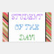 Este design de autocolante motivador e brilhante mostra a mensagem "ESTUDANTE DO DIA!". Um adesivo como este talvez pudesse ser usado para reconhecer a conquista dos estudantes. [~Z0000317]