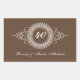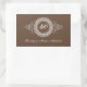 Comemore o casal de aniversário com toda a elegância. Um pano de fundo marrom de chocolate aponta texto personalizado com o número de anos de casamento destacado em um ornamento intrincado. Adicione o nome do casal ou outra mensagem abaixo. Excelente como selos de envelope ou favores. Disponível em cores alternativas com produtos correspondentes.