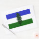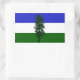 O Doug, a bandeira da República de Cascadia, sobre um autocolante retangular