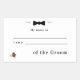 Os convidados adorarão vestir o adesivo do nome de etiqueta "Relation to Groom"! Design apresenta uma adorável gravata arco preta no centro superior e um boutonniere de cor burguesa no canto inferior esquerdo. O texto diz, "Meu nome é" ________ "Eu sou um _____________ do grupo". Os convidados preencherão o seu nome e relação nas linhas fornecidas. Tão fofo e coordena com quase qualquer tema noiva.