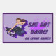 O Skateboarder é projetado pelo criador neste adesivo de retângulo. No adesivo está um texto "Ela ganhou jogo!" e um texto "Go Team/Name", que os clientes podem personalizar.