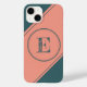 Este telefone apresenta um círculo geométrico duplo centrado em teal sobre um fundo de salmão pálido. Personalize o campo de texto com uma letra inicial ou clique em personalizar para selecionar uma cor de tipo, tamanho e estilo preferidos.