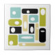 Esse azulejo cerâmico moderno funky apresenta retângulos abstrato-meio século e ovais brancos, nas cores de azul-aqua, verde-abacado, amarelo, branco e preto. Isso vai fazer uma adição fantástica ao seu projeto de tiling!