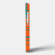 Esta capa de telefone tem um design moderno século médio de retângulos laranja com círculos brancos e dourados e linhas horizontais que os atravessam num campo de chalé.
