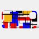Essa capa de telefone tem um design Bauhaus de retângulos e quadrados com linhas pretas atravessando o design num campo de branco.