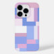 Um design de inspiração do século médio com um padrão abstrato de retângulos geométricos em blocos coloridos de cor rosa, azul e branco.