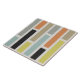 Um padrão de abstrato de arte moderno de meio século com retângulos verticais longos em múltiplas cores de verde-turquesa claro, ouro, bege ou bronzeado, amarelo, laranja e preto.