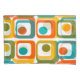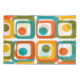 Esta fronha tem um design moderno do século médio de quatro retângulos arredondados em quatro filas com ovais dentro em laranja, amarelo, verde e turquesa.