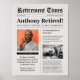 Celebrate the retirement of your teacher with this newspaper poster. Edit the template details with your retiree's highlights. Place in your favorite frame as a gift. FRAME NOT INCLUDED. Perfect for college professors, high school teachers, elementary school teachers, school counselors, school principals, superintendents, custodians, bus drivers, township managers and more.
