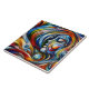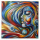 Uma representação abstrato vibrante do perfil da mulher, com cores e formas giratórias que evocam emoção e movimento.