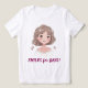 Uma ilustração digital macia e encantadora de uma jovem sorridente com cabelo ondulado curto e olhos expressivos brilhantes. A paleta de cores pastel e detalhes delicados criam uma vibração quente, amigável e alegre, perfeita para amantes de trabalhos de arte bonitinha e estética.