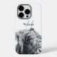 Retrato de vaca em terras altas nome personalizado monograma inicial em preto e branco. Fotografia de um majestoso boi de terra alta em um dia nevado com fundo branco em preto e branco.