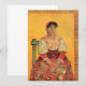 Mulher Italiana (Agostina Segatori) por Vincent van Gogh é uma pintura de retrato pós-impressionista de arte fina vintage da vida cotidiana de uma mulher sentada em uma cadeira e um fundo amarelo brilhante. A figura feminina (provavelmente Agostina Segatori) está sentada com as mãos entrelaçadas no colo e vestindo um lindo traje tradicional.