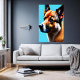 Retrato de um lindo e adorável cão islandês num fundo azul. Esta é uma arte gerada por IA.