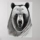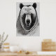 Retrato preto e branco de um urso bonito e adorável sobre um fundo branco. Esta é uma arte gerada por IA.