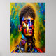 Um retrato colorido de um soldado num uniforme único, com fundo colorido. Esta é uma arte gerada por IA.