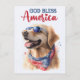 Celebrar o espírito da América com o nosso Cachorro Patriótico, Cartão-postal da América Deus abençoe. Perfeito para o 4 de julho, esta carta encantadora apresenta um cão encantador num cenário patriótico, pronto para trazer um sorriso para rostos em todo o lado. Quer você seja escrevendo a família, amigos ou clientes, este cartão postal é uma maneira emocionante de compartilhar seu amor por esta nação excelente. Adicione um toque de talento pessoal às suas saudações sinceras. Ideal para o Dia dos Veteranos, Dia da Independência, ou só porque, este cartão ajuda-o a expressar o seu orgulho Americano com calor e pensamento.