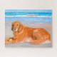 Retriever de ouro na praia com Quebra-cabeça de Bo